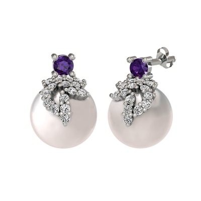 Ametist, swarovski ve inci 925 ayar gümüş küpe