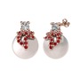 Beyaz zirkon, garnet ve inci 18 ayar rose altın küpe