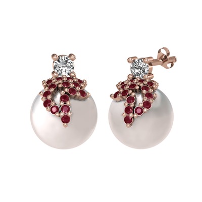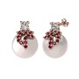 Beyaz zirkon, kök yakut ve inci 18 ayar rose altın küpe