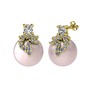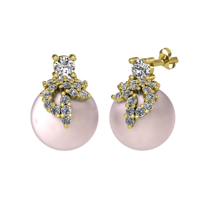 Beyaz zirkon, pırlanta ve pembe inci 8 ayar altın küpe (0.352 karat)