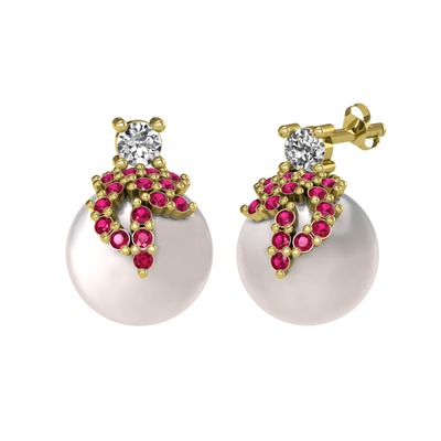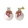 Beyaz zirkon, rodolit garnet ve inci 14 ayar altın küpe