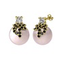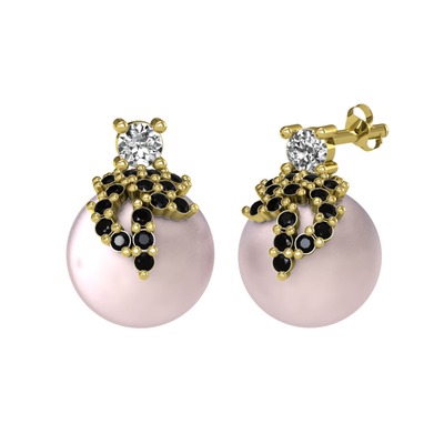 Beyaz zirkon, siyah zirkon ve pembe inci 14 ayar altın küpe