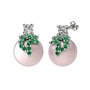Beyaz zirkon, yeşil kuvars ve pembe inci 18 ayar beyaz altın küpe