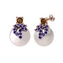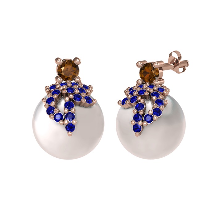 Dumanlı kuvars, lab safir ve inci 14 ayar rose altın küpe
