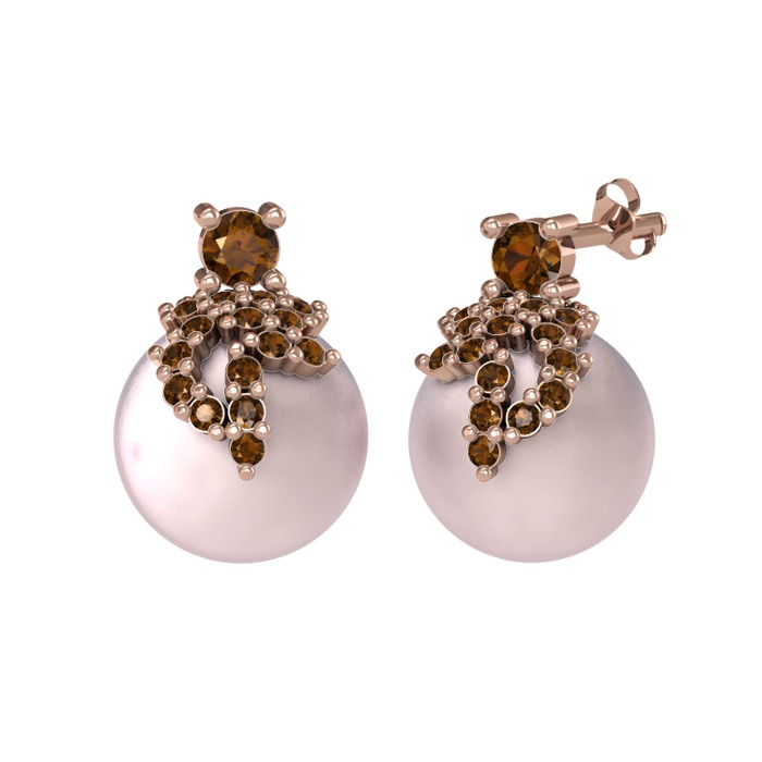 Dumanlı kuvars ve pembe inci 925 ayar rose altın kaplama gümüş küpe