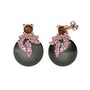 Dumanlı kuvars, pembe kuvars ve siyah inci 925 ayar rose altın kaplama gümüş küpe