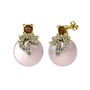 Dumanlı kuvars, pırlanta ve pembe inci 18 ayar altın küpe (0.352 karat)
