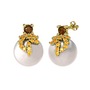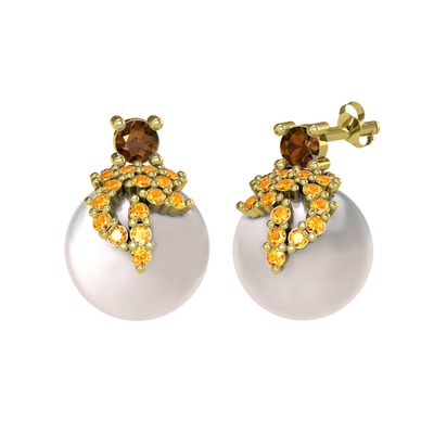 Dumanlı kuvars, sitrin ve inci 14 ayar altın küpe