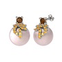 Dumanlı kuvars, sitrin ve pembe inci 14 ayar beyaz altın küpe