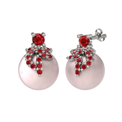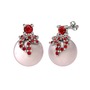 Garnet ve pembe inci 14 ayar beyaz altın küpe