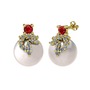 Garnet, pırlanta ve inci 8 ayar altın küpe (0.352 karat)