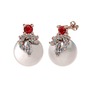 Garnet, pırlanta ve inci 8 ayar rose altın küpe (0.352 karat)