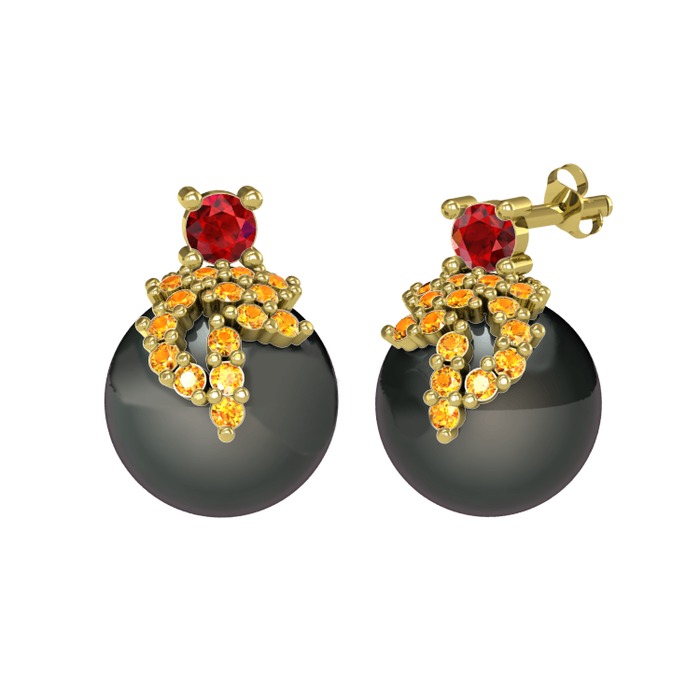 Garnet, sitrin ve siyah inci 925 ayar altın kaplama gümüş küpe