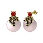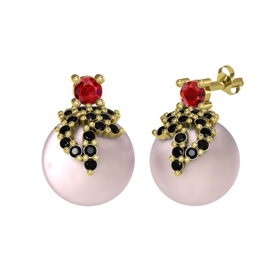 Garnet, siyah zirkon ve pembe inci 14 ayar altın küpe