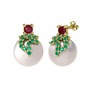 Kök yakut, kök zümrüt ve inci 8 ayar altın küpe