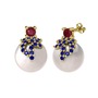 Kök yakut, lab safir ve inci 8 ayar altın küpe
