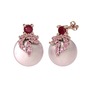 Kök yakut, pembe kuvars ve pembe inci 14 ayar rose altın küpe