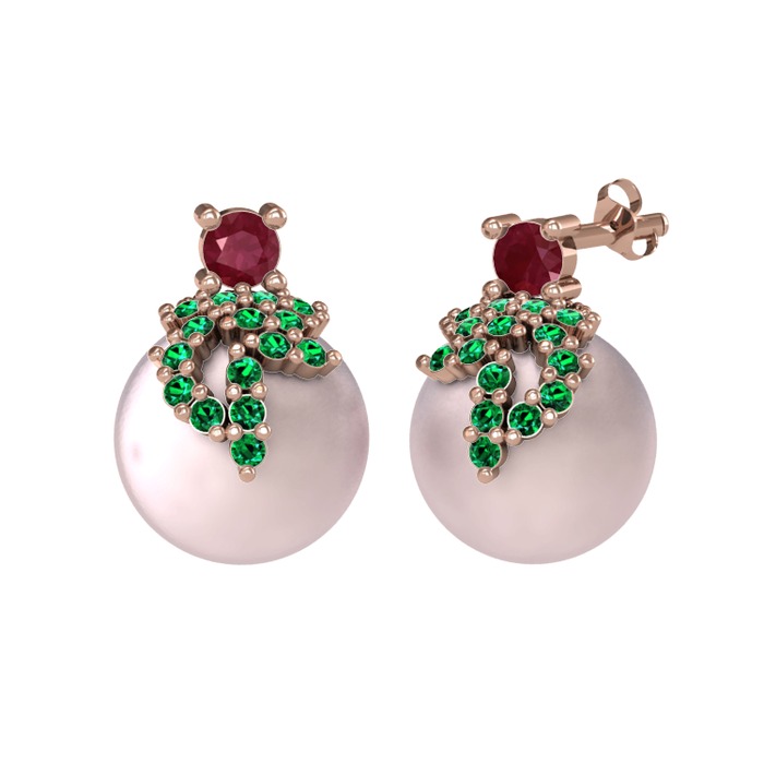 Kök yakut, yeşil kuvars ve pembe inci 8 ayar rose altın küpe