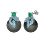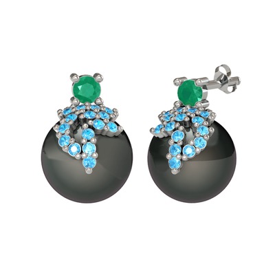 Kök zümrüt, akuamarin ve siyah inci 925 ayar gümüş küpe