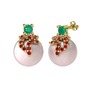 Kök zümrüt, garnet ve pembe inci 8 ayar altın küpe