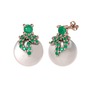 Kök zümrüt ve inci 8 ayar rose altın küpe