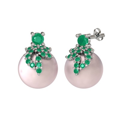 Kök zümrüt ve pembe inci 925 ayar gümüş küpe