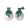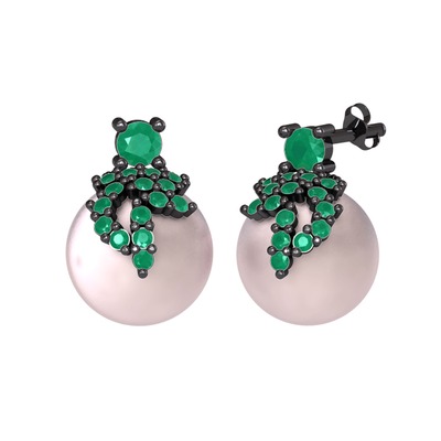Kök zümrüt ve pembe inci 925 ayar siyah rodyum kaplama gümüş küpe