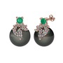Kök zümrüt, pırlanta ve siyah inci 18 ayar rose altın küpe (0.352 karat)