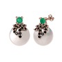 Kök zümrüt, siyah zirkon ve inci 8 ayar rose altın küpe