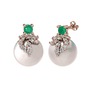 Kök zümrüt, swarovski ve inci 8 ayar rose altın küpe