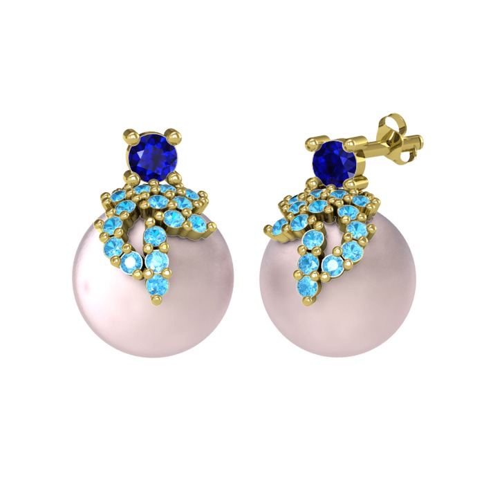 Lab safir, akuamarin ve pembe inci 8 ayar altın küpe