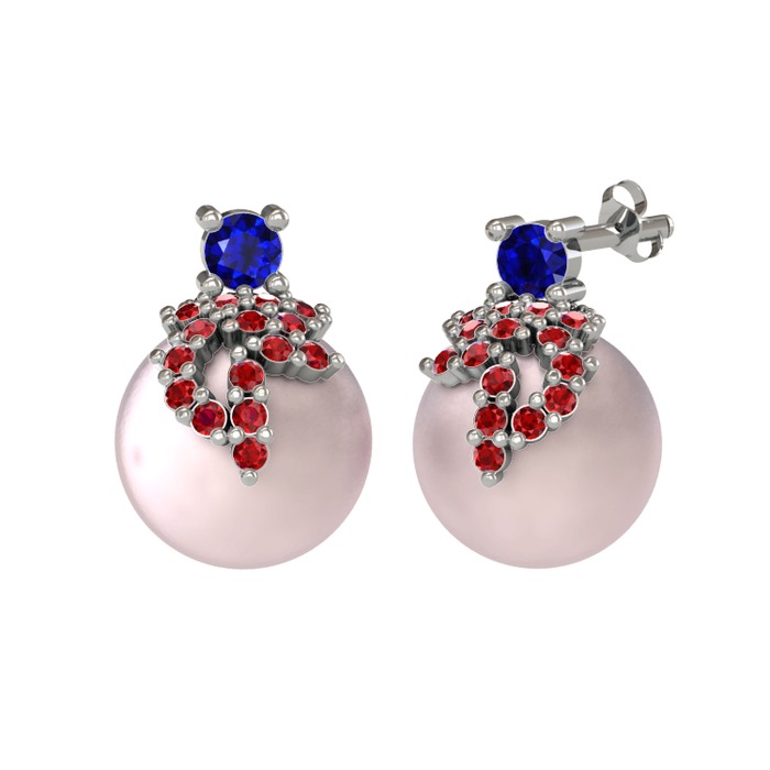Lab safir, garnet ve pembe inci 8 ayar beyaz altın küpe