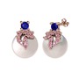 Lab safir, pembe kuvars ve inci 8 ayar rose altın küpe