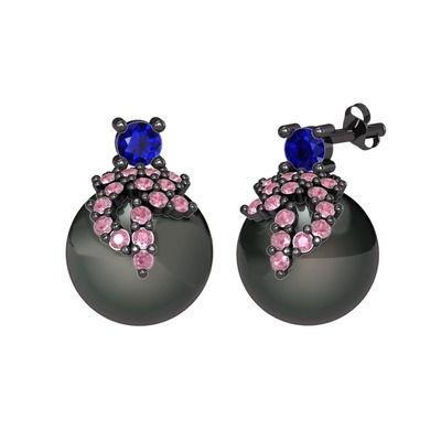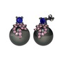 Lab safir, pembe kuvars ve siyah inci 925 ayar siyah rodyum kaplama gümüş küpe