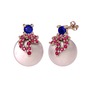 Lab safir, rodolit garnet ve pembe inci 14 ayar rose altın küpe