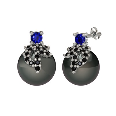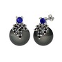 Lab safir, siyah zirkon ve siyah inci 18 ayar beyaz altın küpe