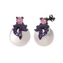 Pembe kuvars, ametist ve inci 925 ayar siyah rodyum kaplama gümüş küpe