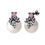 Pembe kuvars, beyaz zirkon ve inci 925 ayar siyah rodyum kaplama gümüş küpe