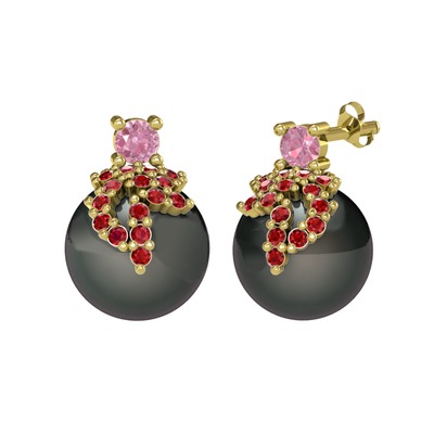 Pembe kuvars, garnet ve siyah inci 925 ayar altın kaplama gümüş küpe