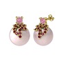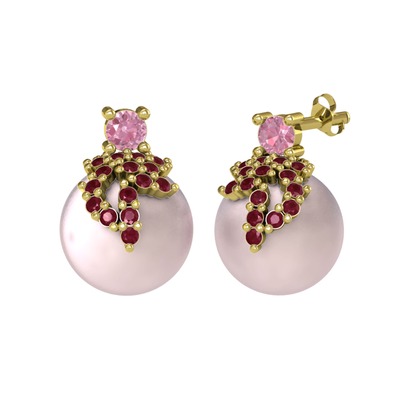 Pembe kuvars, kök yakut ve pembe inci 925 ayar altın kaplama gümüş küpe