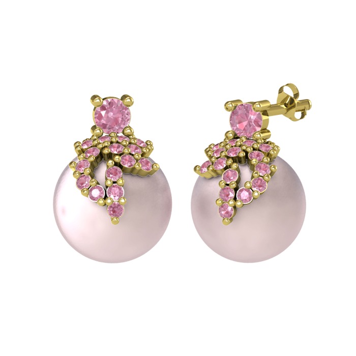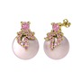 Pembe kuvars ve pembe inci 14 ayar altın küpe