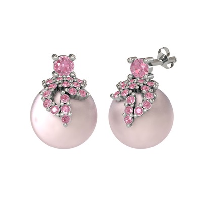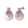 Pembe kuvars ve pembe inci 18 ayar beyaz altın küpe