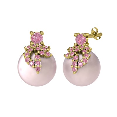 Pembe kuvars ve pembe inci 8 ayar altın küpe