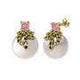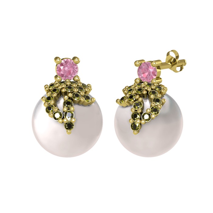 Pembe kuvars, peridot ve inci 925 ayar altın kaplama gümüş küpe