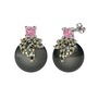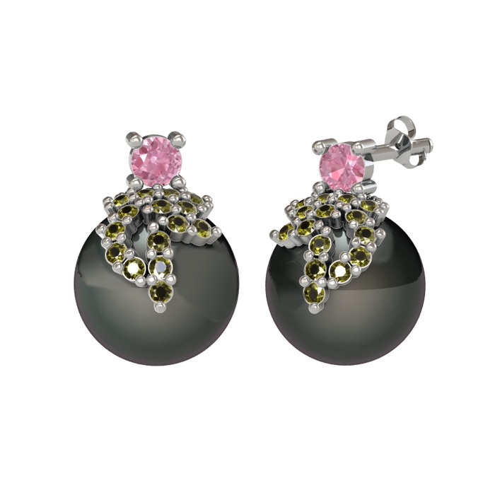 Pembe kuvars, peridot ve siyah inci 925 ayar gümüş küpe