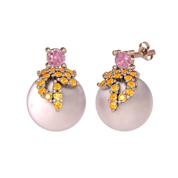 Pembe kuvars, sitrin ve pembe inci 925 ayar rose altın kaplama gümüş küpe
