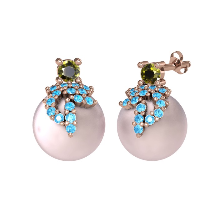 Peridot, akuamarin ve pembe inci 8 ayar rose altın küpe