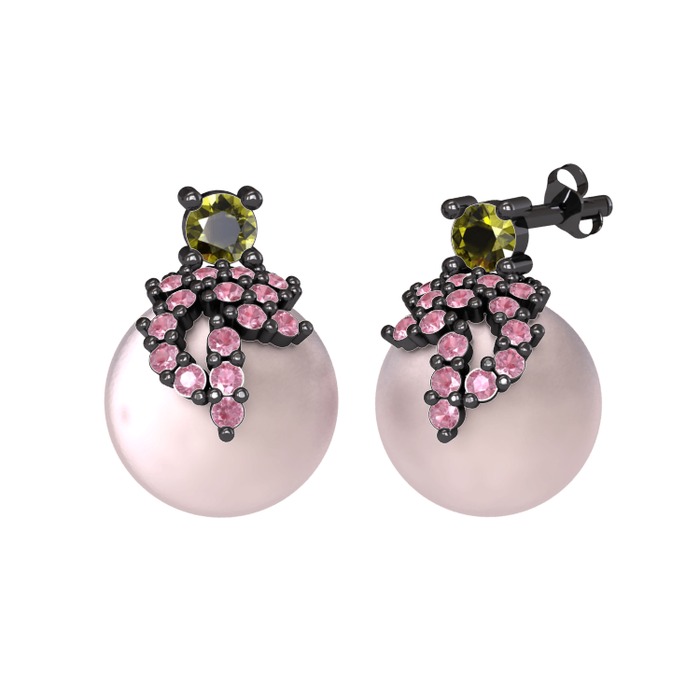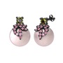 Peridot, pembe kuvars ve pembe inci 925 ayar siyah rodyum kaplama gümüş küpe