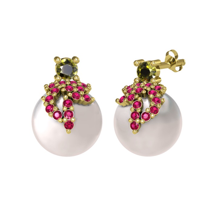 Peridot, rodolit garnet ve inci 14 ayar altın küpe