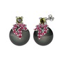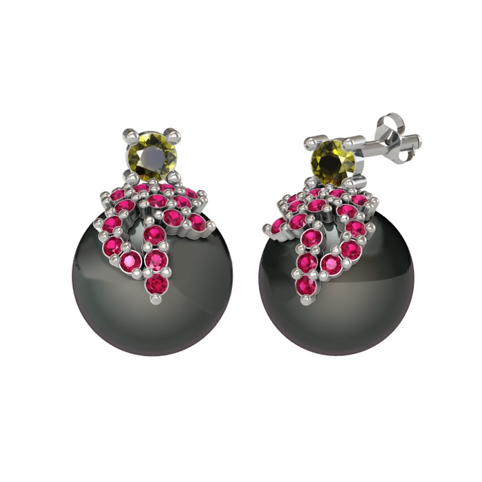 Peridot, rodolit garnet ve siyah inci 14 ayar beyaz altın küpe